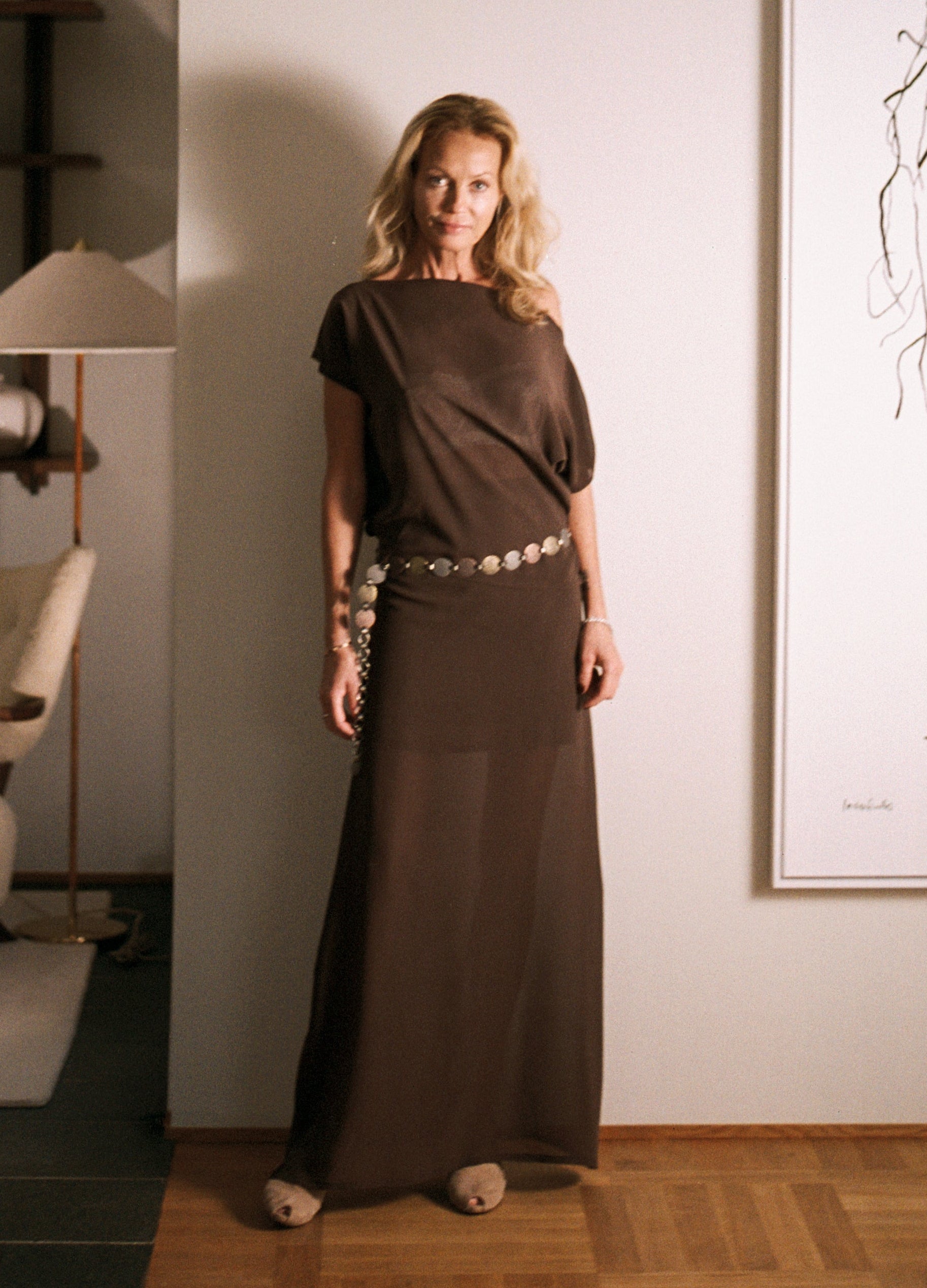 Pair this silk skirt with our chocolate silk shirt or silk draped top.